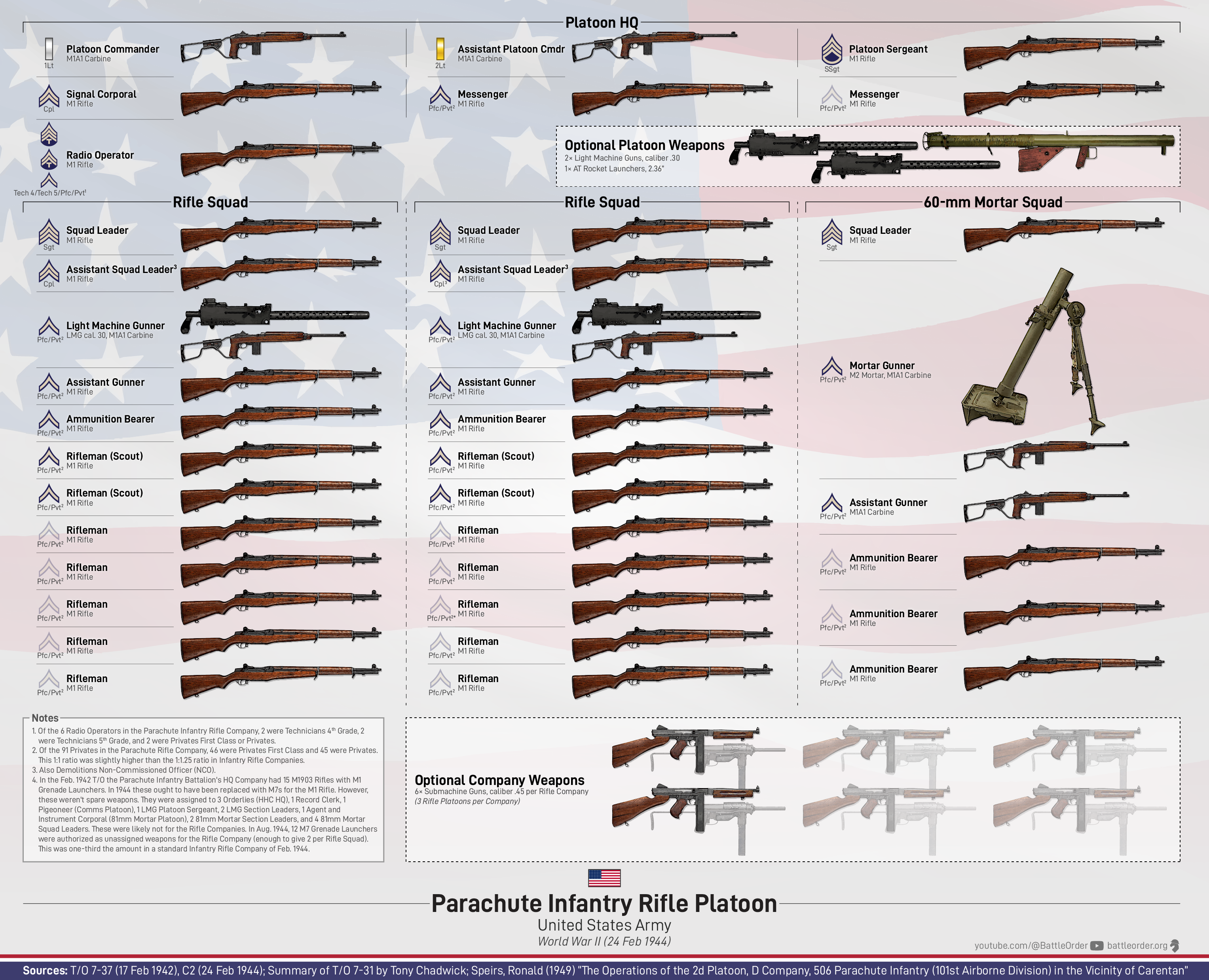 WWII U.S. Sources - Created with links to all the big sites and papers that provide all the TO&E information you could want, the best TO&E books for the U.S. Army, where you can read Shelby Stanton's US Army ORBAT Book for free, 14 sets of actual TO&Es, 3 reference data books, 2 shorter logistical data sheets for 1941 armored divisions, and a letter from October 1944 talking about the ETO requesting ordnance to facilitate the addition of 6 BARs per Rifle Company and 6 M1919A6s per Infantry Battalion.