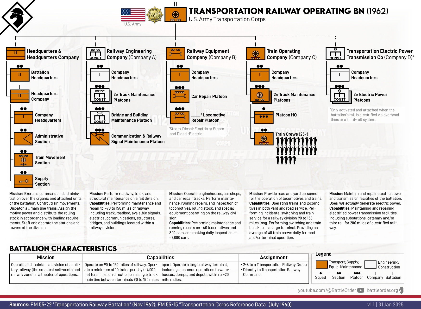 U.S. Army Transportation Railway Operating Battalion (TO&E 55-225, ~1962)